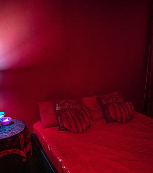 This Room features red lights to really set the mood and tone